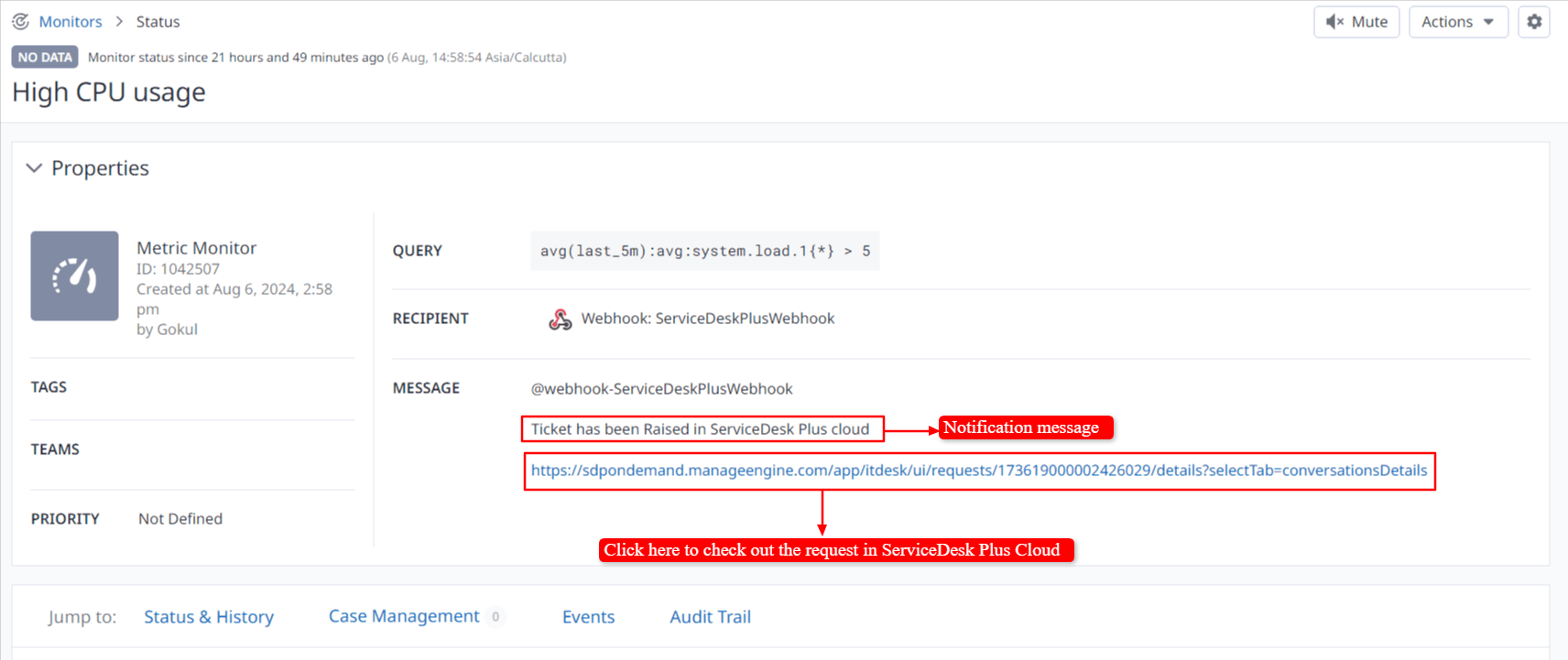 Datadog is a powerful monitoring and analytics platform for cloud-scale applications, providing end-to-end visibility across dynamic, high-scale infrastructure. Ensure that critical asset issues are promptly addressed by creating tickets for low-performing assets and resolving them automatically.